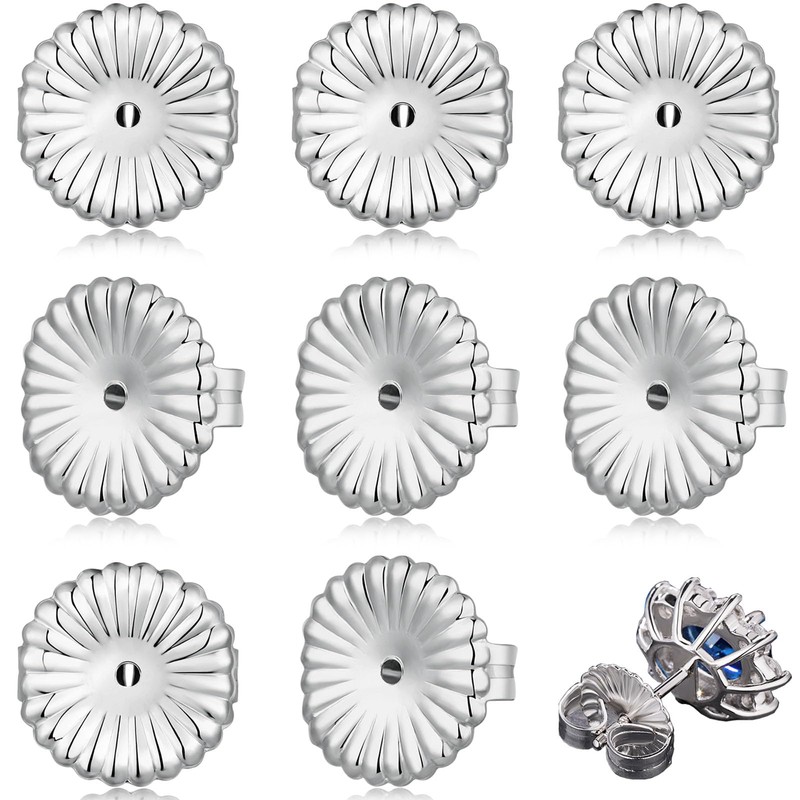 Formulen 8 Pieces Earring Backs for Droopy Ears, Large Earring Backs Replacements for Studs Secure Locking Earring Lifters for Heavy Earring (Silver,9mm)