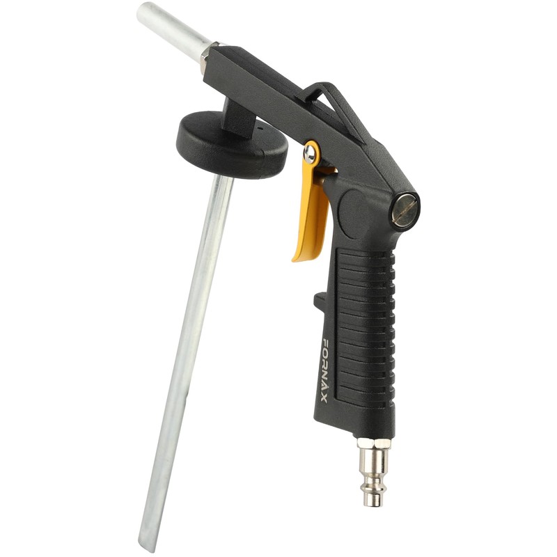 The FORNAX air undercoating spray gun is excellent for applying automotive rust proofing, rubberized undercoating, chip guard, truck bed liner, and other general-purpose coatings. It can be used with oil, solvent, and water-based materials. The spray gun width and fluid are adjustable, and it works for Herculiner and all other spray-able truck bed liners.
