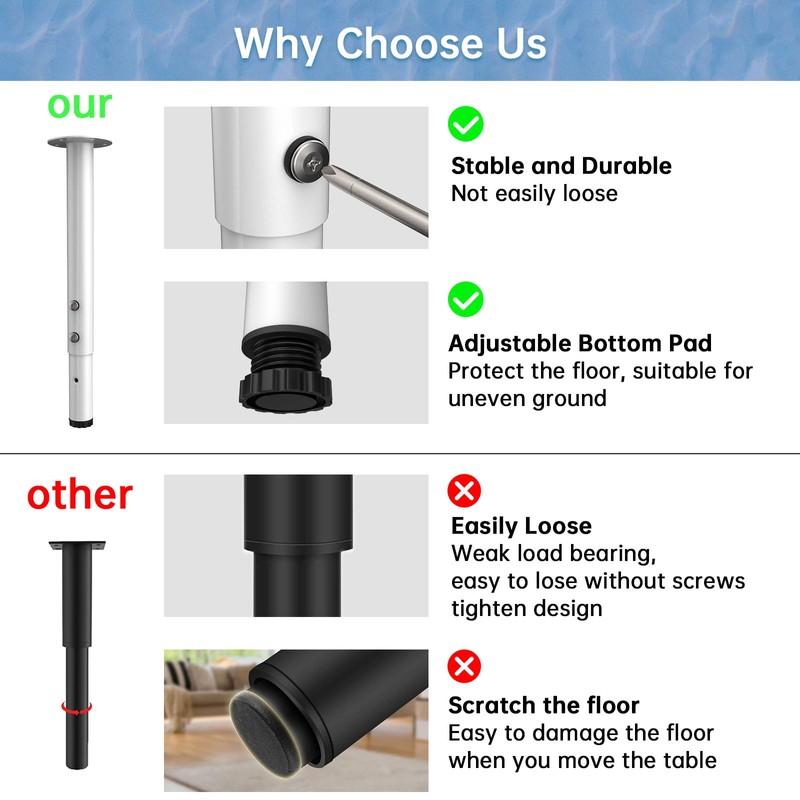 - 【Adjustable Height Table Legs】:4 Pcs 22" -35.5" adjustable height table legs can be adjusted from 35"-50".You can adjust the length to 22, 24, 26, 28, 30, 32, 34, 35.5 Inch. Great for computer desk, dining table, office desk.