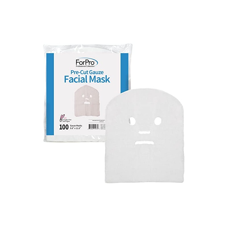 ForPro Precut Gauze Facial Mask, 100% Cotton Gauze, for High Frequency Facial Treatments and Masks, 100-Count