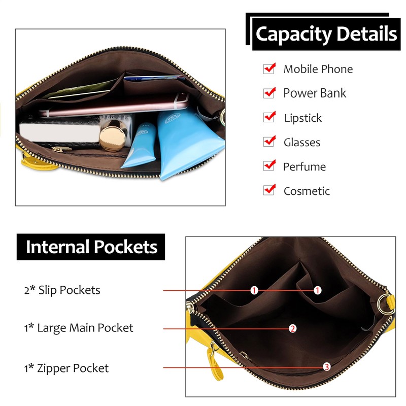 - ❤ Elegant Ladies Crossbody Clutch: Simple and elegant appearance, exquisite workmanship, 1 large-capacity pocket is very practical. With 1 detachable wrist strap and 1 shoulder strap, this women's bag can be used as a clutch wallet, shoulder bag or crossbody bag.
