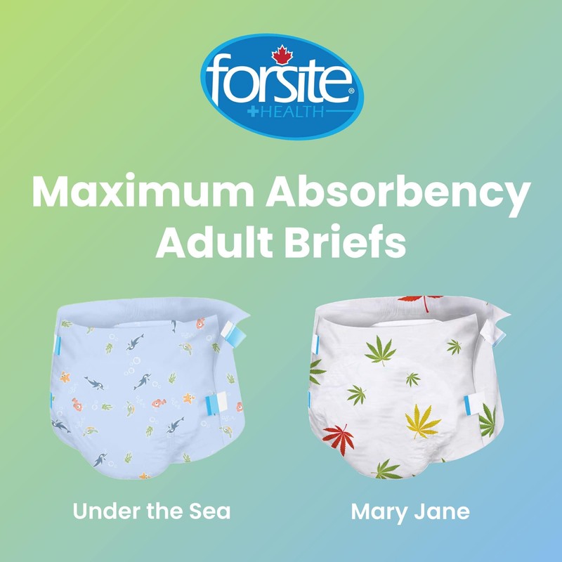 - UNDER THE SEA - Dive into a more comfortable and ultra-absorbent brief experience with the Under the Sea adult brief from Forsite Health! Enjoy the bright blue print dotted with sea creatures for a fun diaper-wearing experience.