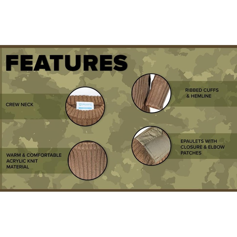 - Feature: Knitted, Heavyweight, Shoulder & Elbow Patches