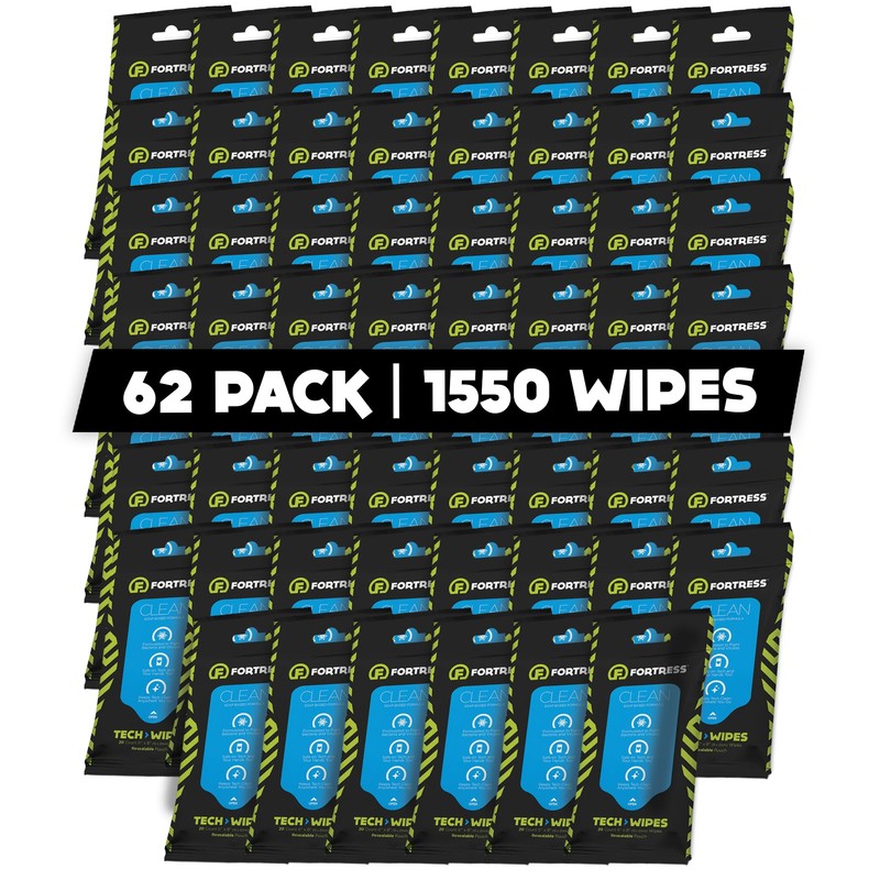 Fortress Electronic Wipes (25 ct, Pack of 62) To-Go Tech Wipes for Screens, Phones, Keyboards, TV Monitors, Computer Screens, and More [Travel Size] Skin-Safe Screen Cleaner Wipes, Electronic Wipes