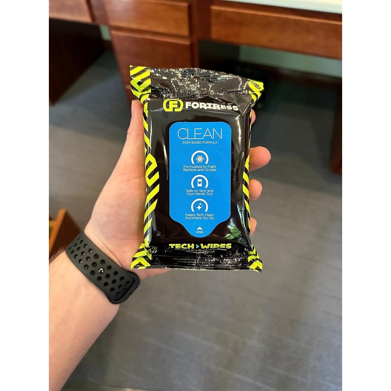 - Big and Moist: Tech Wipes are 6 inches by 8 inches unlike those lame little individually wrapped lens wipes. I hate those things. Tech Wipes contain the perfect amount of moisture. They hold enough cleaning formula to clean your entire phone head to toe, plus your keyboard, PLUS your smartwatch all in one go. Those things stay wet.