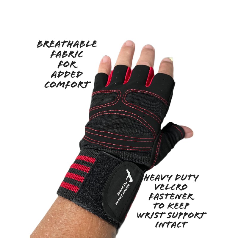 Fortune Favors The Swole Workout Gloves for Men and Women, Wrist Support Straps, Exercise Gloves for Weightlifting, Strength Training, Gym, Home Gym (Large, Black/Red/Red)