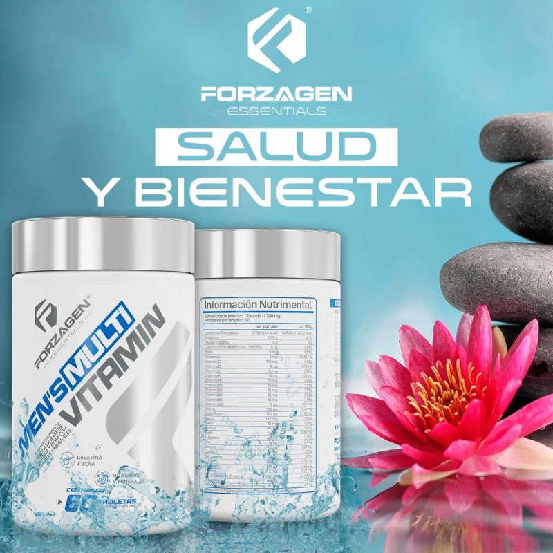 Forzagen Essentials Mens Multivitamin es el aliado idóneo para hombres que buscan mantener un estilo de vida activo y saludable. Con una combinación de vitaminas y minerales, Creatina, BCAA y L-Arginina, se convierte en el multivitamínico para hombre más completo.