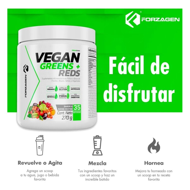 Forzagen | Vegan Greens + Reds 270 G | Vitaminas Y Fibra Sabor Mixed Berry
