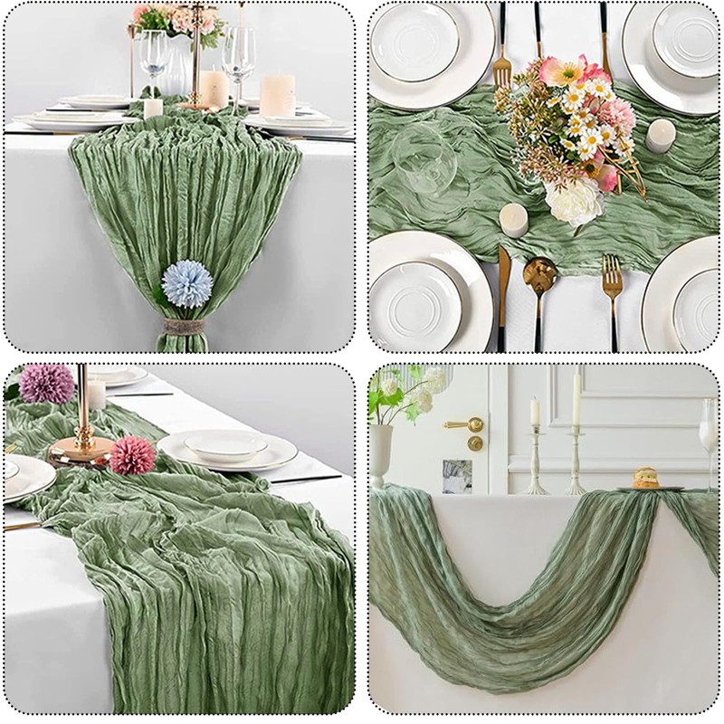 FOSDICK 1Pcs Cheesecloth Table Runner, 90×300cm Sage Green Table Runner, Cheese Cloth Table Runner, Rustic Gauze Fabric Table Runners for Weddings, Boho Table Runner for Home Party Table Decorations