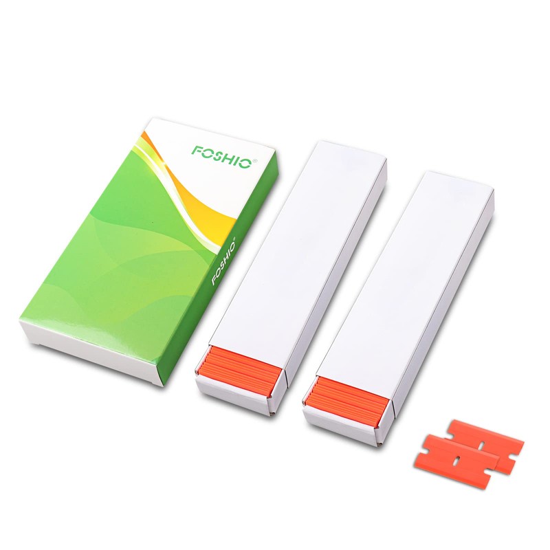 FOSHIO Plastic Razor Blades 200PCS Double Edged Suit for Safety Glass Scraper and Plastic Scraper with Plastic Blades, Suit for Remove Decals Stickers Adhesive Label and Glass Clean