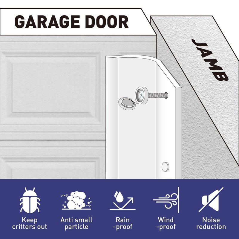 - MULTIPLE FUNCTIONS - Seal the top and side of the garage door insulation, proof wind, Anti small particle, Rainproof and noise reduction, prevent leaves from entering, and provide the comprehensive protection function, help to save energy.