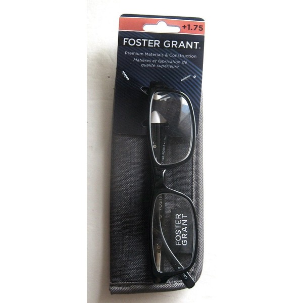 Foster Grant Classic Men's Black Rectangular Reading Glasses with Soft Case Brandon +1.75
