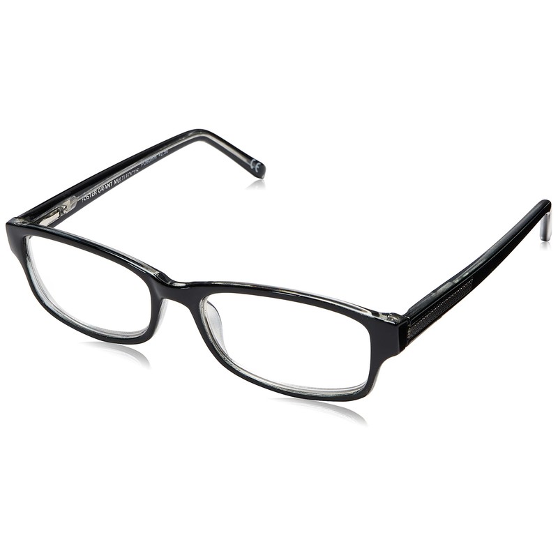 Foster Grant James Multifocus Rectangular Reading Glasses, Black/Transparent,...