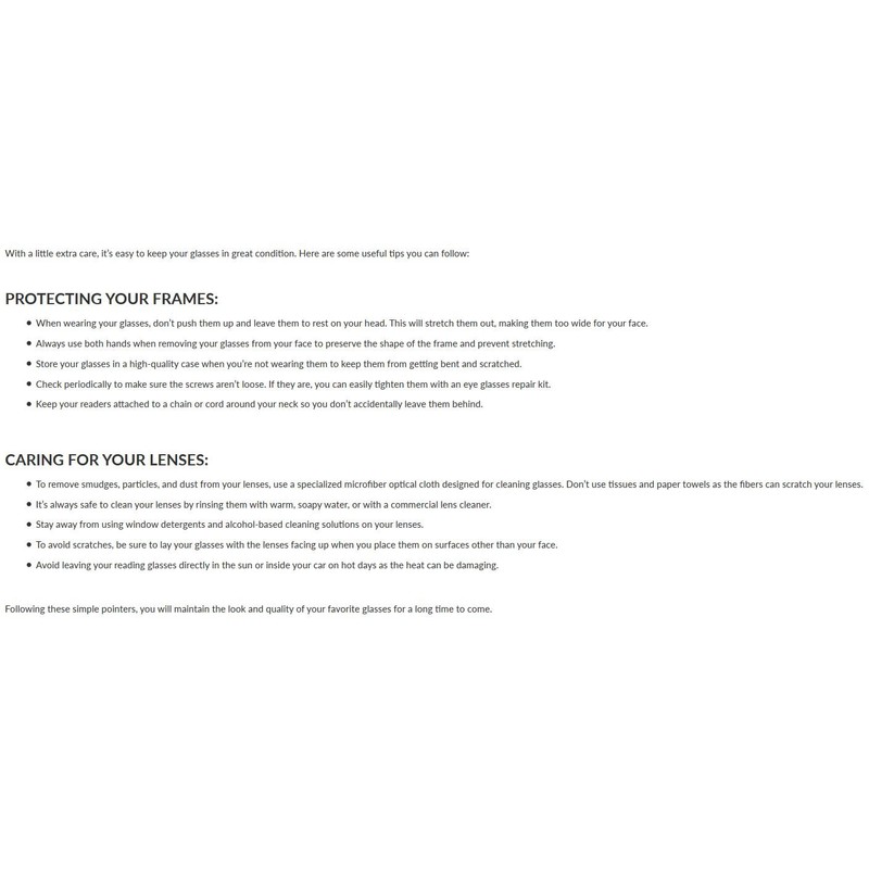 - Scratch & Impact Resistant: Our durable reading and computer glasses feature scratch- and impact-resistant polycarbonate lenses designed to withstand minor drops and dings