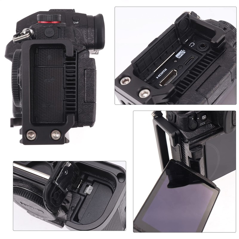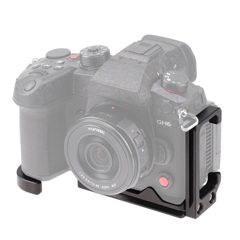 - L-plate specially designed for the PANAS0NIC LUMIX GH6 camera, fits perfectly with the camera body, does not fluctuate or twist when mounted on the mount, and allows full access to battery cover and all cable interfaces.