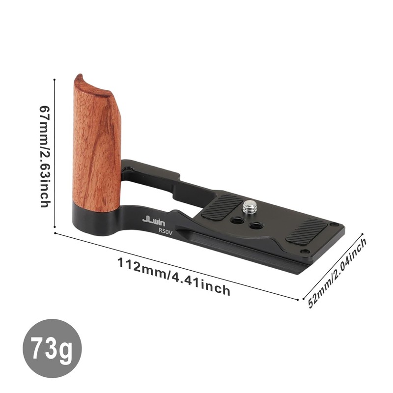 • This L-shaped grip is designed for Canon EOS R50V camera. The handgrip is fastened using a single 1/4"-20 screw located at the bottom.