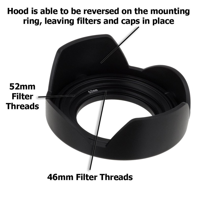 - 46mm & 52mm Front Threads for Filters and Lens Cap