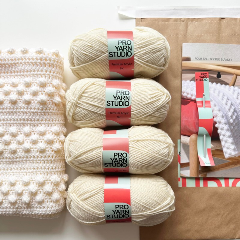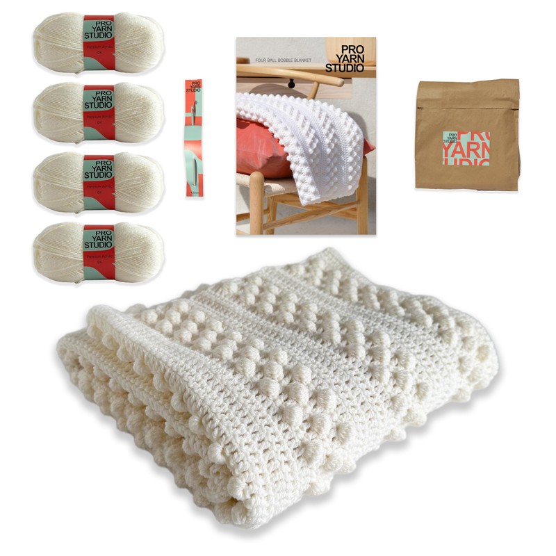 Four Ball Bobble Crochet Kit with 4 x 100g DK Yarn, 4.5mm Crochet Hook, Easy Crochet Pattern