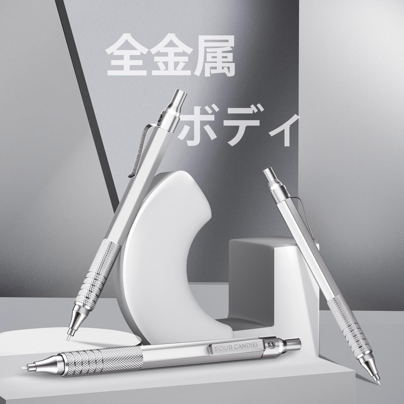 Four Candies 0.5mm Mechanical Pencils Set with Case, 3 Metal Artist Pencils, 480 HB Leads Sharer Lead, Stationery Set with Eraser for Engineers, Art, Writing, Drafting - Silver