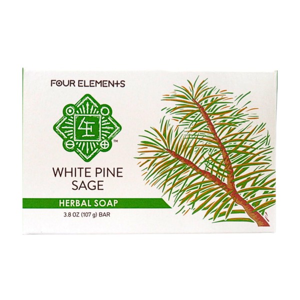 Four Elements 4E White Pine Sage Soap, Organic Herbal Soap, 3.8 OZ