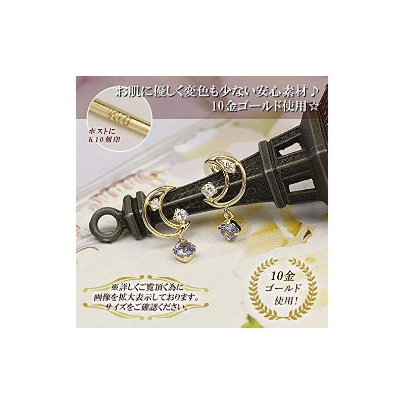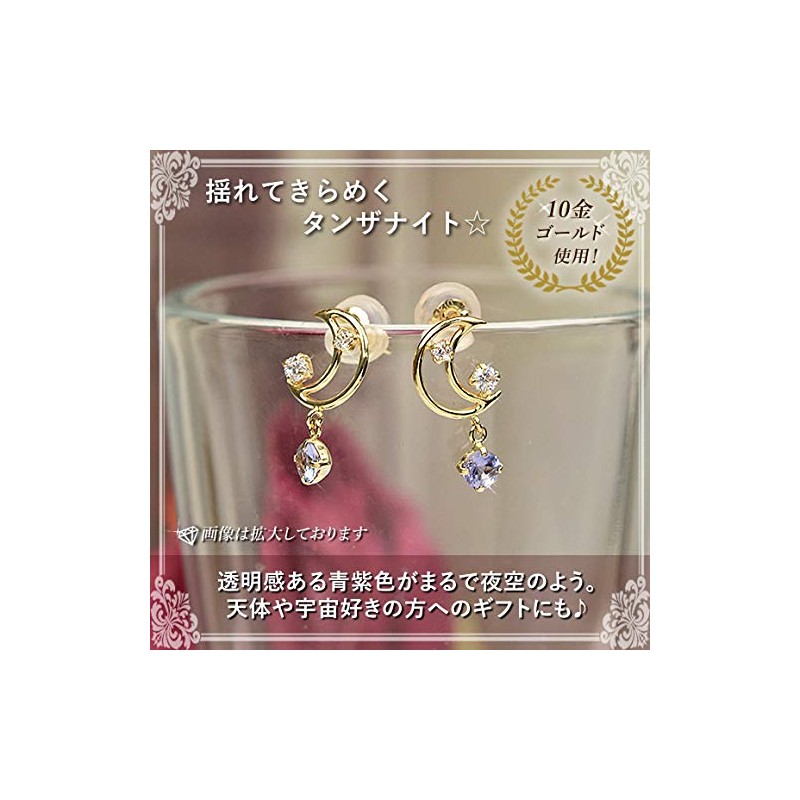 Four Leaf Clover Kk167 Dangling Earrings, Cubic Zirconia, 10k Gold, 10k K10 Gold, Crescent Moon, Tanzanite, Stud Earrings, December Birthstone, Women's, Women's, Cubic Zirconia, Tanzanite