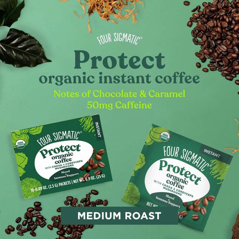 Four Sigmatic Mushroom Coffee, USDA Organic Coffee with Cordyceps and Chaga mushrooms, performance, Vegan, Paleo, 10 Count