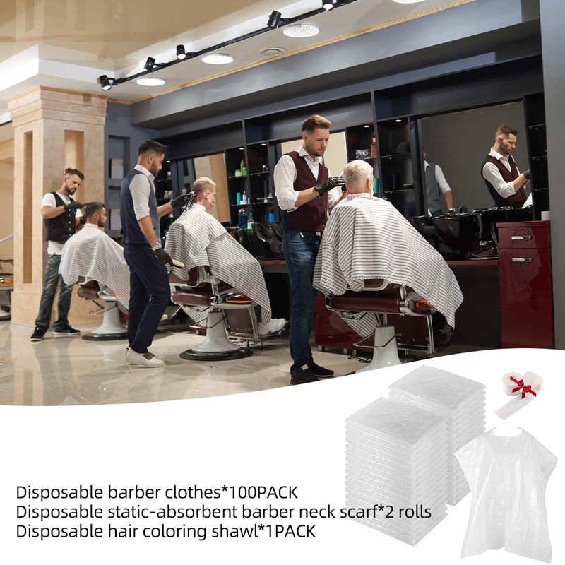 - LIGHTWEIGHT & DURABLE MATERIAL - Made of safe and transparent PE material, the disposable barber capes for hair cutting have many high-quality characteristics such as lightweight, wear and tear resistance, high transparency and good air permeability.It can be easily adjusted to fit the neck and knotted. Throw it away after use, eliminating the hassle of cleaning.