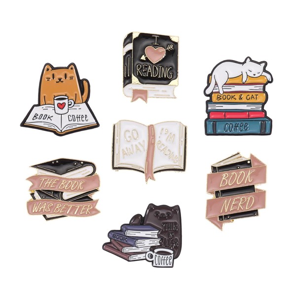 - 📚 7pcs Book Pins Bulk with Beige Velvet Bag: Cartoon Books Enamel Pins Magic Book Badges Pins Cute Collar Brooch Decorative Lapel Pins for Backpack Clothing Learning Gifts for Teacher Student Readers Book Lovers