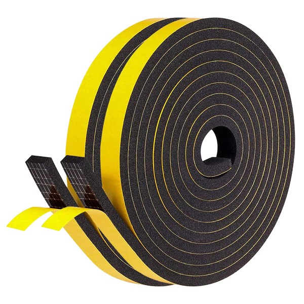 - STRONG ADHESIVE - 12mm (W) * 6mm (T) * 8M (L) foam tape. Strong thicken back, extra grid adhesive tape, non-degumming, Stick Firmly, give your doors and windows long time sealing protection