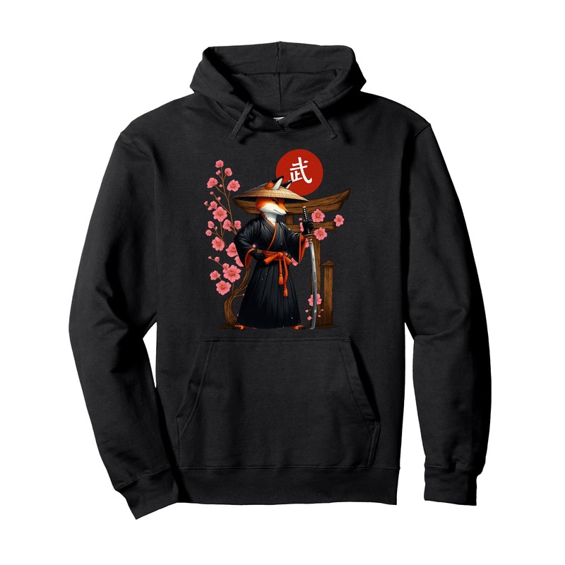 Fox Kitsune Samurai Japanese Aesthetic Warrior Pullover Hoodie