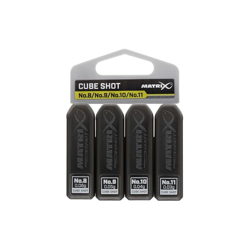 Fox Matrix Cube Shot Dispenser X5 Gr. 8, 9, 10 & 11 - Klemmbleie - Die Gewichte aus dem Hause Fox Matrix sind gute Klemmbleie, die aus weichem & reinem Blei hergestellt sind. Durch ihre Würfelform sind sie leicht aneinanderzureihen. Zudem können sie auf der Schnur einfach verschoben werden, ohne diese zu beschädigen. Die mittige Einkerbung ist tief geschnitten, um so leicht an Ihrer Angelschnur befestigt werden zu können. Die Lieferung erfolgt in kompakten Spendern. Bei diesem Artikel erhalten Sie einen 4er-Pack mit Gewichten in Größen 8, 9, 10 und 11.