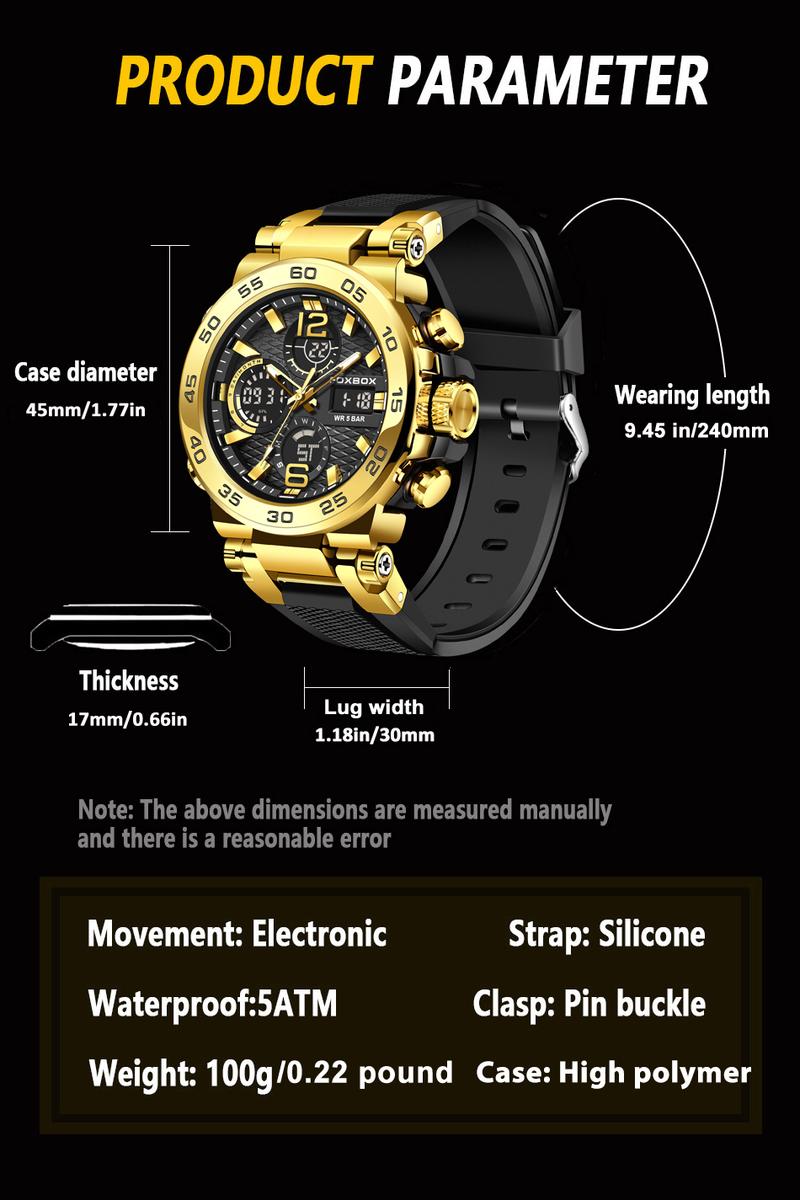 FOXBOX Men's Fashion Sports Watch, 50M Water-Resistant, Luminous Display with Digital Dial - Color: Black