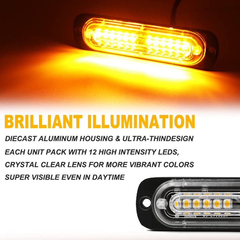 - 【BRILLIANT ILLUMINATION】 FOXCID 4Pcs LED Grille Surface Mount Strobe Light, each unit pack with 12 high intensity leds, the aluminum alloy housing and crystal clear lens protect vary well of the chip, and maximum the brightness feature for user.