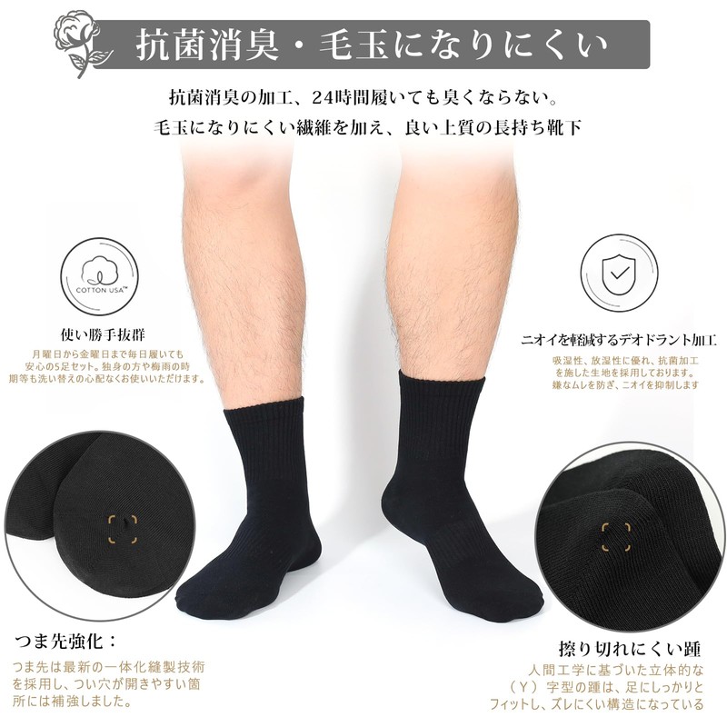 - Antibacterial Deodorizing and Anti-Pilling: With the addition of deodorizing treatment, anti-pilling fibers this product strongly suppresses the growth of bacteria, so your feet will not smell even if you sweat. Comes in a set of 5 pairs for convenient washing. It will not get stuffy even in the summer and is comfortable to wear for a long time. No tightening at the ankles, and it will not swelling even if you wear it for a day without getting out of shape. It is also great for people who stand on their feet or are on the go. If you are concerned about the smell of your shoes, please try these anti-bacterial and anti-odor socks
