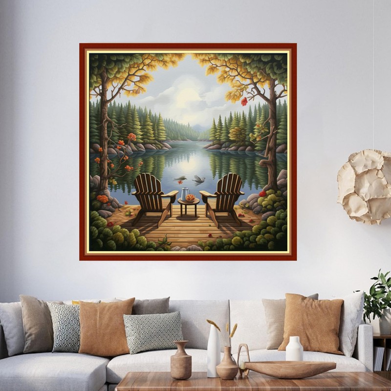 Foxhool Beginners Cross Stitch Kits Stamped Full Range of Embroidery Kits for Adults DIY Cross Stitches kit Embroidery Patterns for Needlepoint kit-Rest Scenery 17.7x17.7 inch