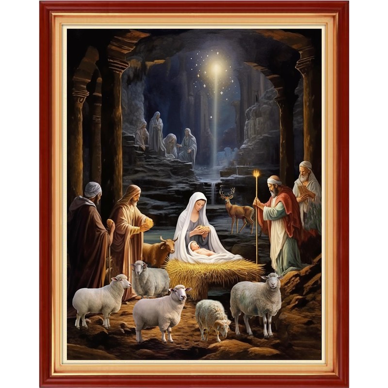 Foxhool Stamped Cross Stitch Kits,11CT Printed Cross Stitch Pattern Full Embroidery Kits for Beginner Needlepoint Kits-Great Nativity 16x20 inchs