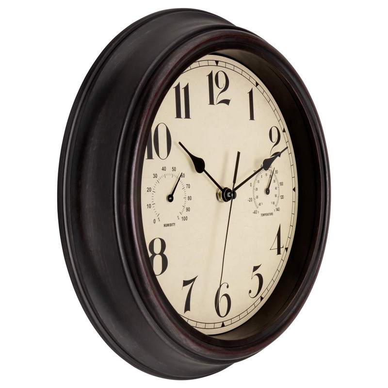 • Thermometer & Humidity Combo: Outdoor clock has built-in Analog hygrometer & thermometer combo. Automatically measures accurate Indoor/outdoor temperature degree from -40H to 140H(-40 to 60), humidity readings from 0% to 100% RH.