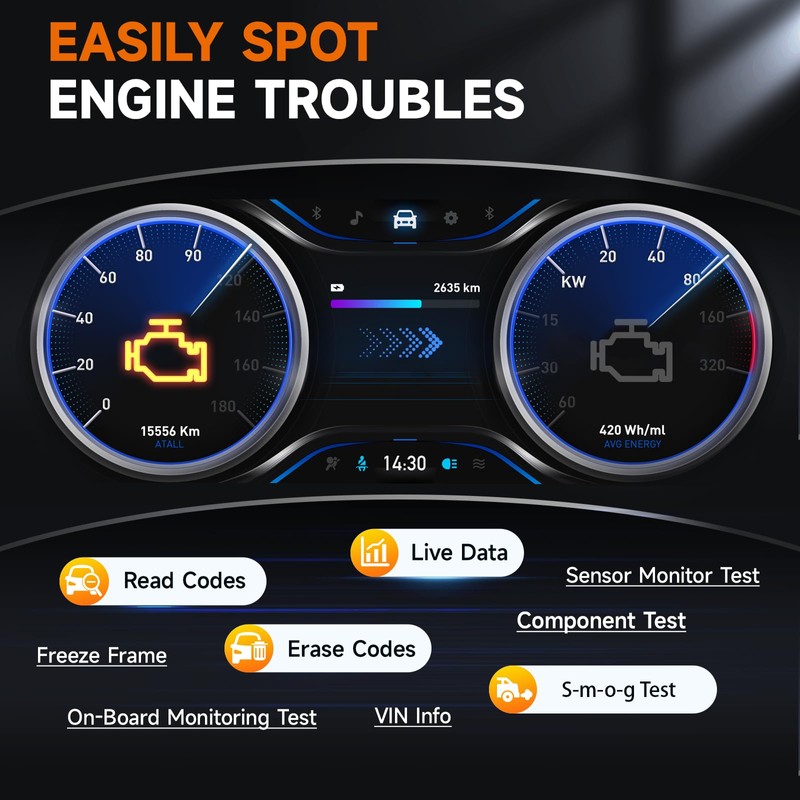 • 【Wide Compatibility & DTC Lookup to Help Repair】Compatible for standard OBD vehicles with 12V batteries from 1996 to now, including compliant cars, light-duty trucks,12v diesels, SUVs, minivans, hybrid, golf cart, motorcycle. The built-in DTC library with 3W+ detailed definition helps you understand the specific engine faults. In addition, the scan tool for all vehicles also support the maintenance guidance of the fault code.