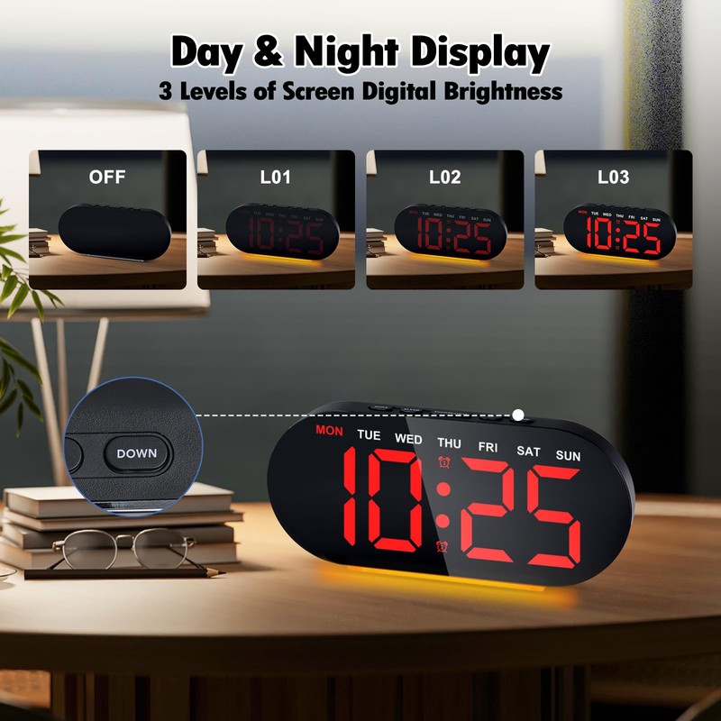 - 【Intuitive Control】Designed for effortless use, our digital alarm clock features clearly labeled, top-mounted buttons that make setting alarms and adjusting settings simple for everyone. The thoughtful design combines practicality with sleek aesthetics, making it the perfect thoughtful gift, be it a milestone birthday or a surprise holiday treat. Give the gift of hassle-free mornings with a bedside clock that values straightforward operation as much as elegant design.