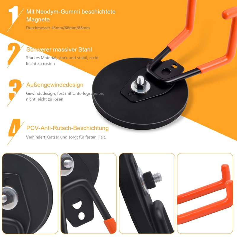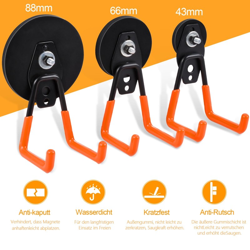 Magnetic Hooks, Extra Strong 88 mm Thick Magnets with Hooks, Magnetic Hooks for Kitchen, Garage, Fridge, Curtains, Classroom, Barbecue, Tools (Orange, 2 Pieces)