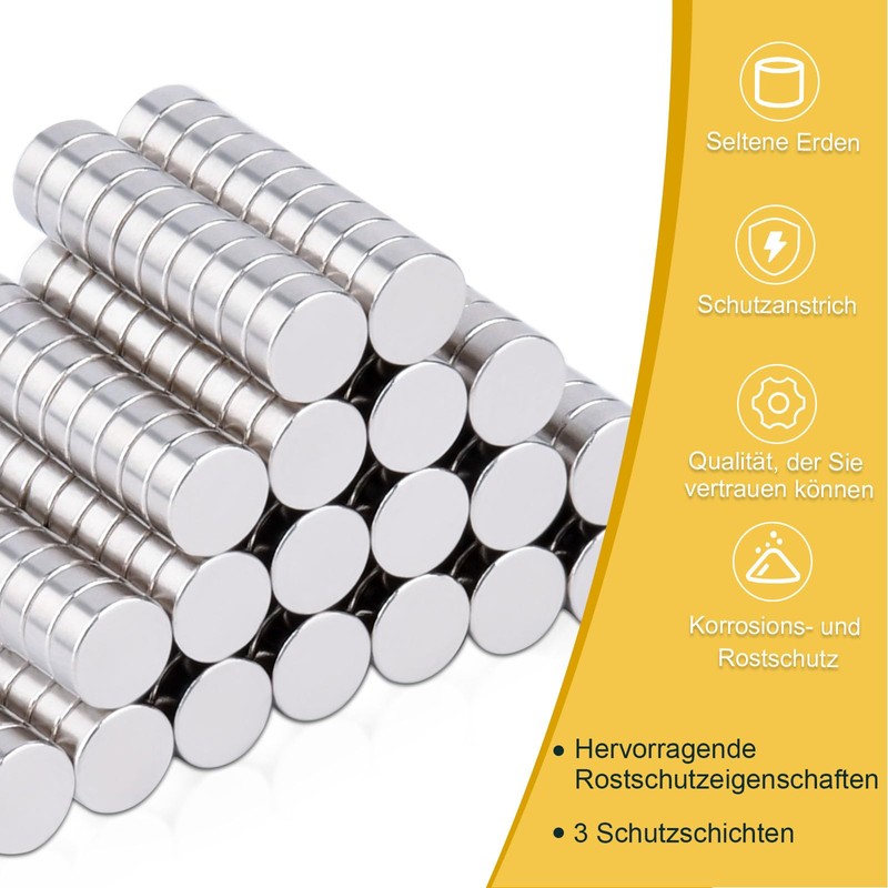 - High-quality materials: these 4 x 1.5 mm magnetic neodymium magnets extra strong are made of high-quality material, with a triple nickel coating, which allows a maximum working temperature of 80°, copper and nickel protect the magnet from corrosion and damage.