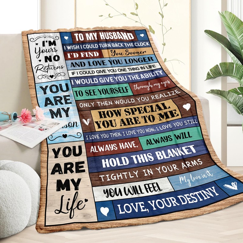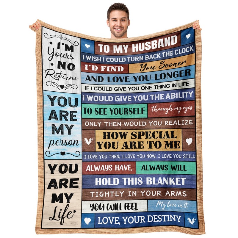 - Husband Blanket: Measuring 60"x80", this high-quality fleece blanket delivers cozy comfort and soothing warmth. Whether he’s lounging on the couch, reading in bed, or unwinding after a long day, this snuggly and ultra-soft blanket will provide the relaxation he deserves, wrapping him in a feeling of love and security