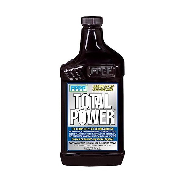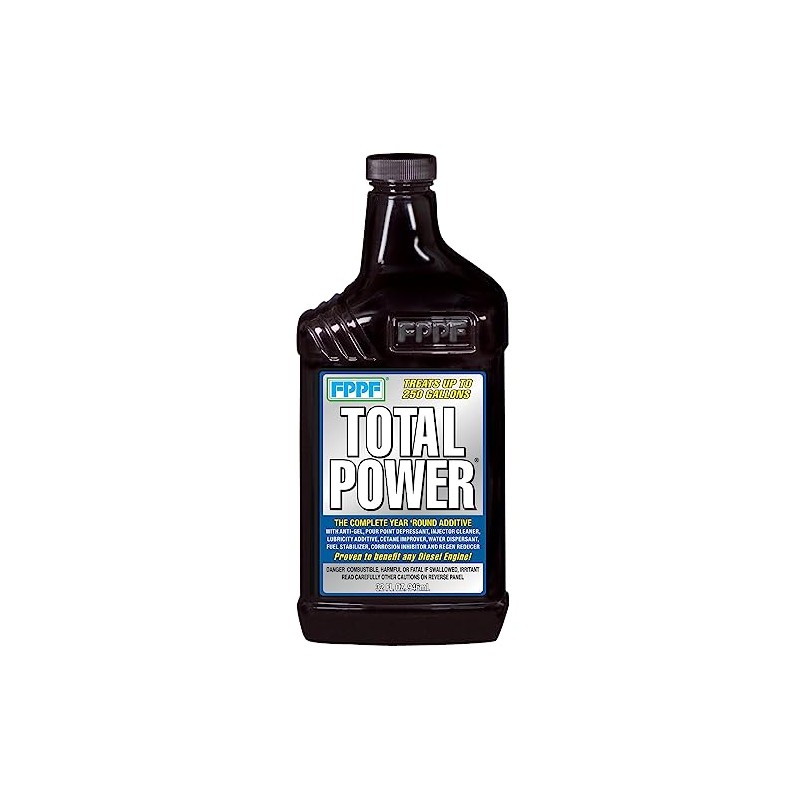 FPPF Total Power Best Antigel Water Dispersant Cetane Injector Cleaner 00343 is a highly effective diesel fuel additive designed to meet the demands of modern diesel engines. Specifically formulated to comply with federal ultra-low sulfur content requirements, this additive not only ensures optimal engine performance but also provides comprehensive protection against common fuel-related issues. With a unique blend of water dispersant, pour point depressant, cold filter plug point inhibitor, injector cleaner, cetane improver, and lubricity additive, it delivers unparalleled results. Treatable up to 250 gallons, it offers exceptional value and longevity. This product stabilizes fuel, reduces active, passive, and forced DPF regenerations, and significantly improves fuel economy by 4.6% to 14.7%. Engineered for compatibility with both common rail and traditional diesel engine technologies, it stands as an essential solution for maintaining engine efficiency and longevity.