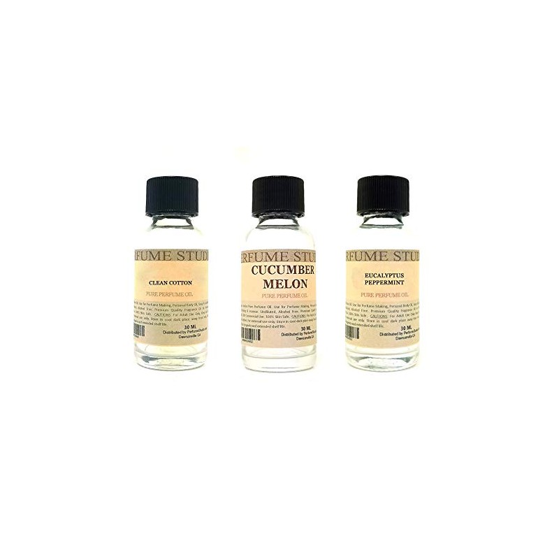 Perfume Studio Pure Parfum Strength Fragrance Oil 3-Piece Set; 1oz Splash-On Glass Bottle, each. Undiluted, Alcohol Free Concentrated Premium Grade Oil. Use for Perfume Making, Personal Body Oil, Cologne making, Soap & Candle Making, Incense. Use on Oil Burners and some home diffusers, depending on manufacturer.