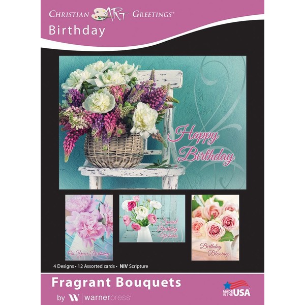 Fragrant Bouquets - Birthday Greeting Cards - NIV Scripture - (Box of 12)