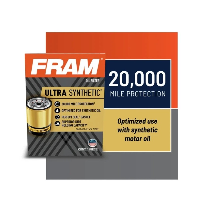 The FRAM Ultra Synthetic Oil Filter with SureGrip technology delivers industry-leading engine protection for modern cars and light-duty trucks. Specifically engineered for drivers who demand maximum engine performance and utilize synthetic motor oils with extended service intervals up to 20,000 miles.