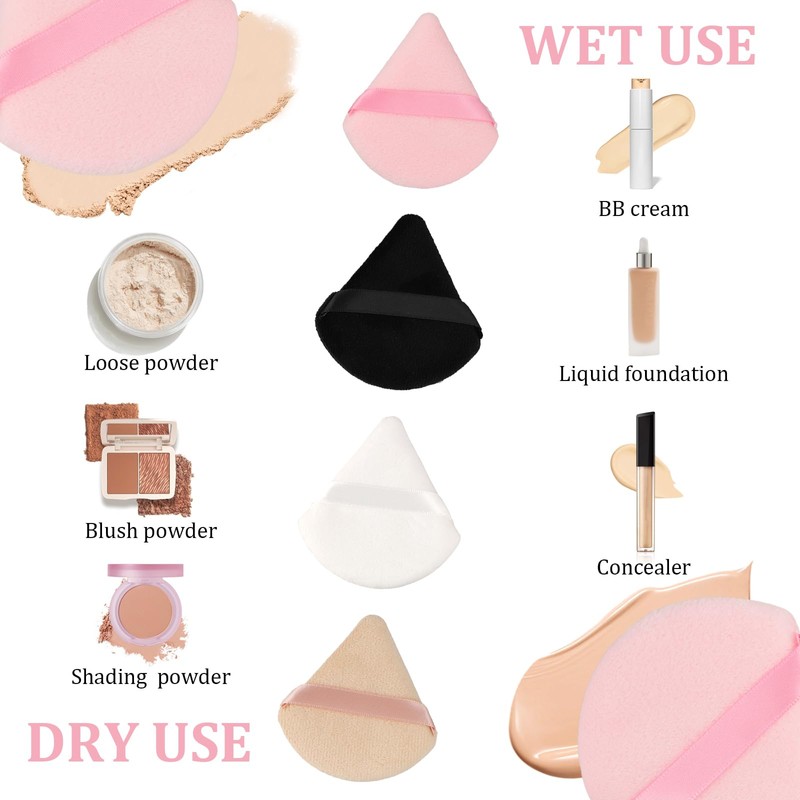 Framad 40PCS Triangle Puffs for Face Powder with 4 Case, Reusable Velour Small Travel Makeup Sponge Puffers