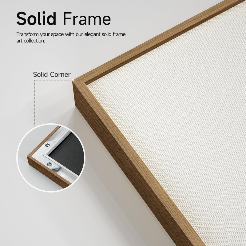 - [Framed Wall Art]: A set of 3 pieces large framed neutral abstract wall art, each measuring 16x24 inches, 3 pieces totaling 24x48 inches.The frame is made of durable, rust-proof metal, and the surface is covered with a layer of wood veneer with natural wood grain to simulate real wood grain.
