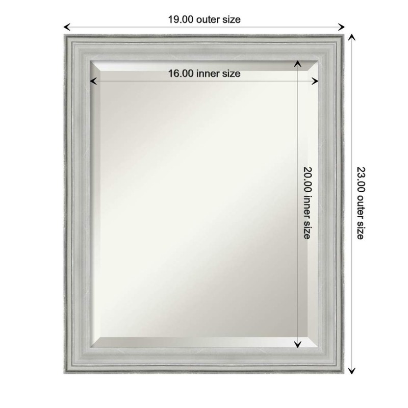 - DIMENSIONS: The overall size of this vanity mirror measures 19.00 x 23.00 inches, including the frame. Its reflective area measures 16.00 x 20.00 inches, which works perfectly over a standard vanity. The mirror itself has a 1-inch bevel.