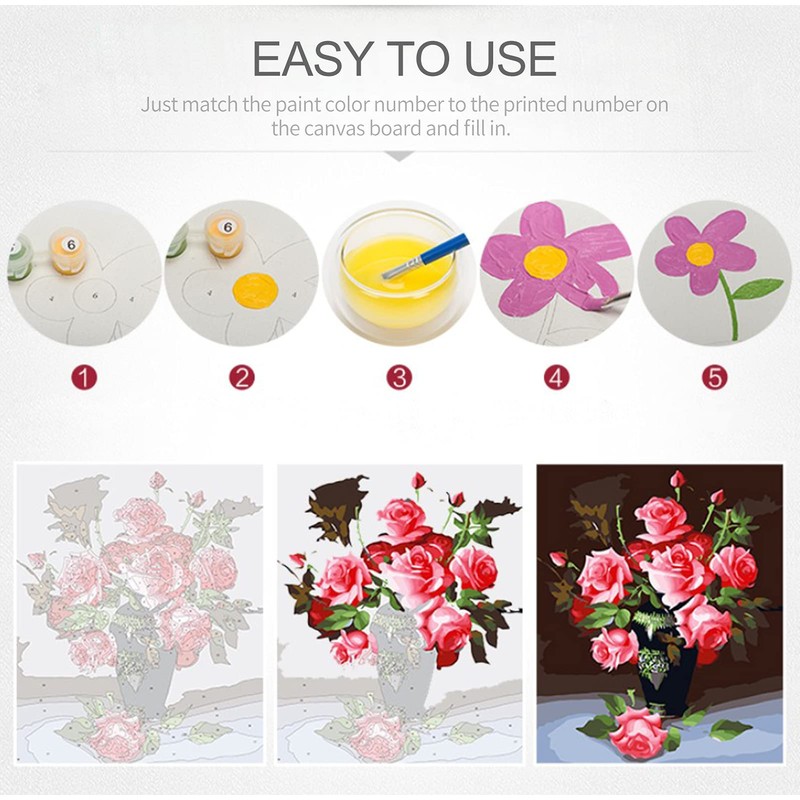 - [Easy to Use]No need to blend the paint, very easy to follow the instruction. Just match the paint color number to the printed number on the canvas board and fill in.